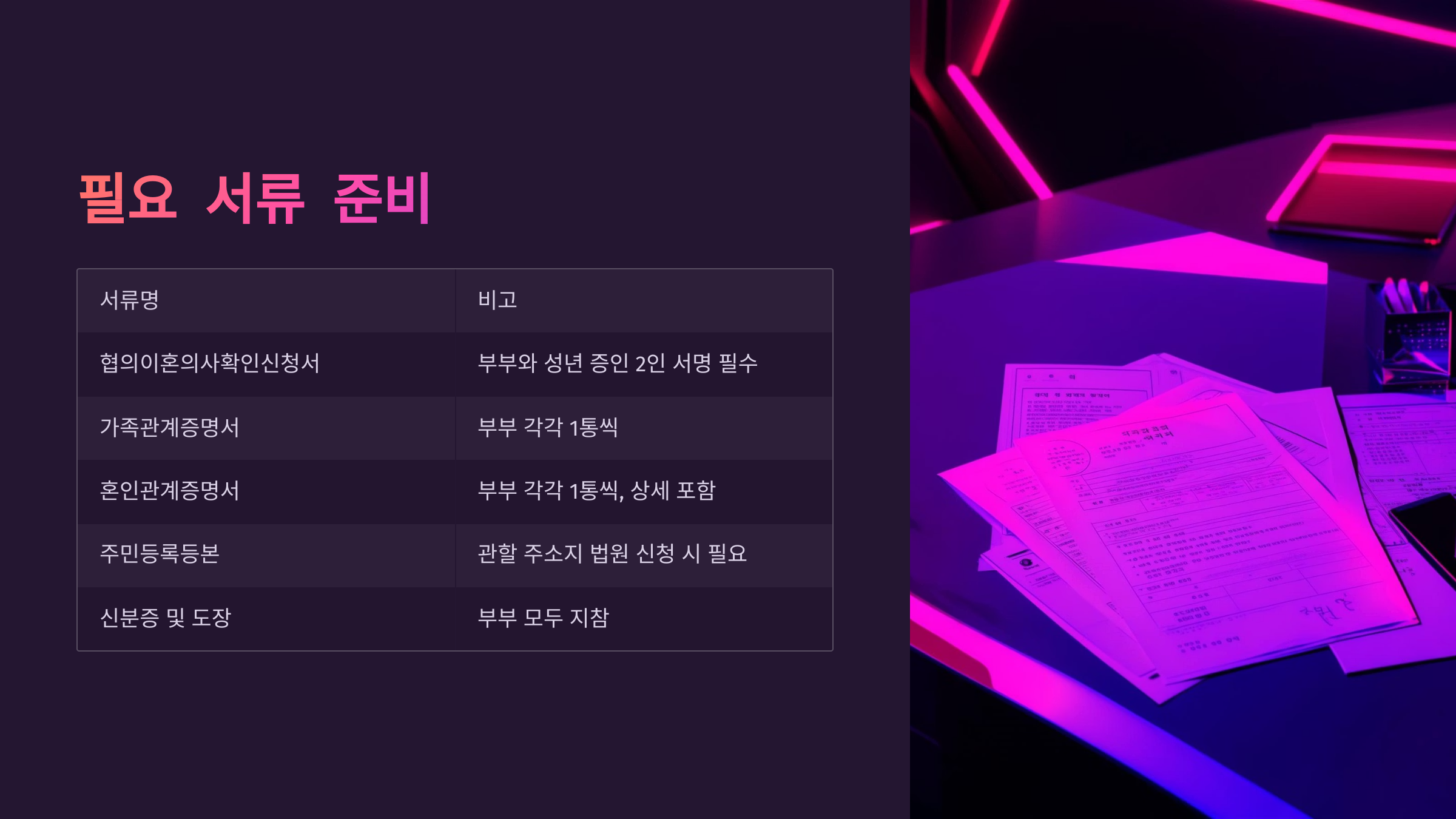 단, 간단하다고 생각하기 쉽지만 정해진 법적 절차와 필요한 서류가 정확히 준비되어야 하고, 미성년 자녀가 있을 경우에는 더 꼼꼼하게 절차를 밟아야 해요.