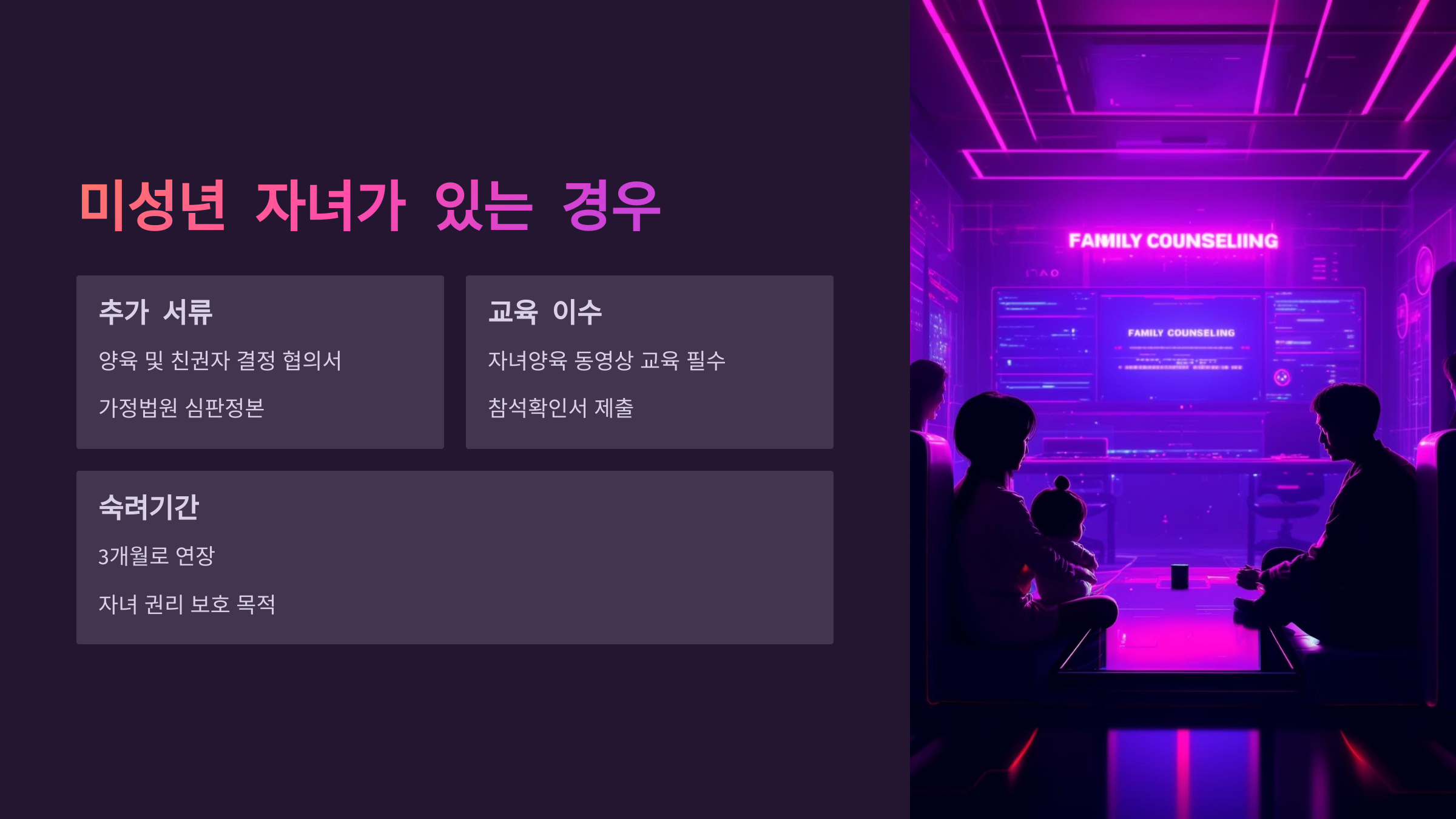 자녀가 있는 경우, 법원은 자녀의 권리를 보호하기 위한 추가 서류를 요구합니다.