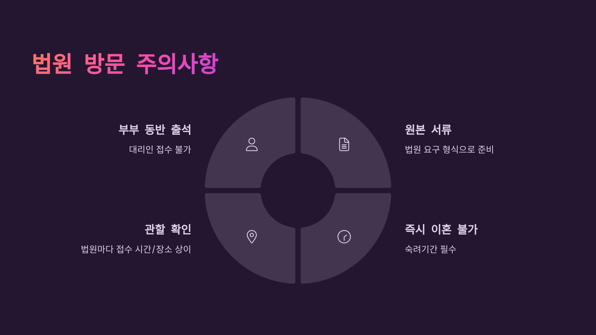 • 법원마다 접수 시간과 장소가 다를 수 있으니 관할 가정법원 홈페이지 확인 필수!