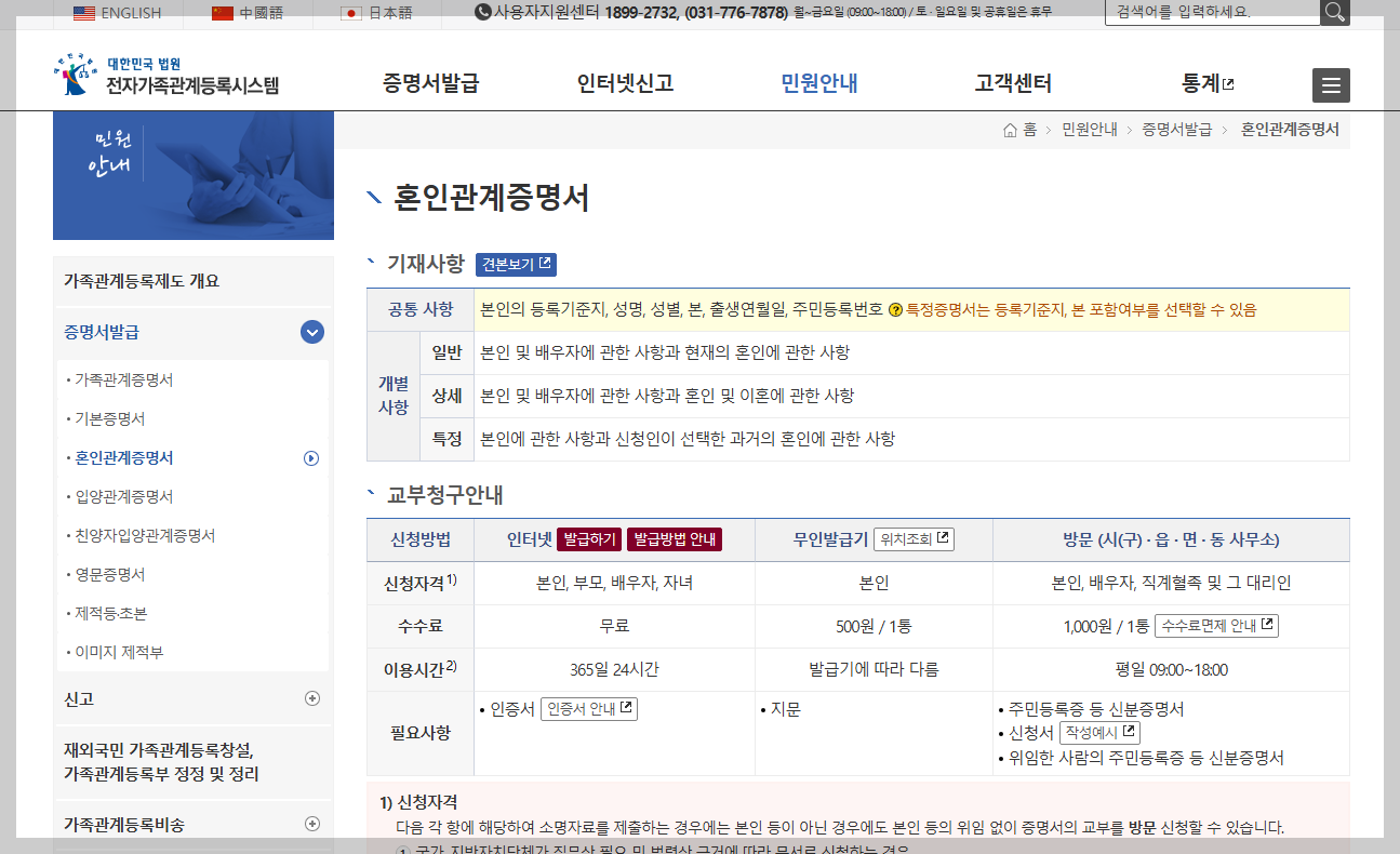 바로 전자가족관계등록시스템 사이트 또는 모바일 앱을 통해 온라인 발급이 가능하거든요!