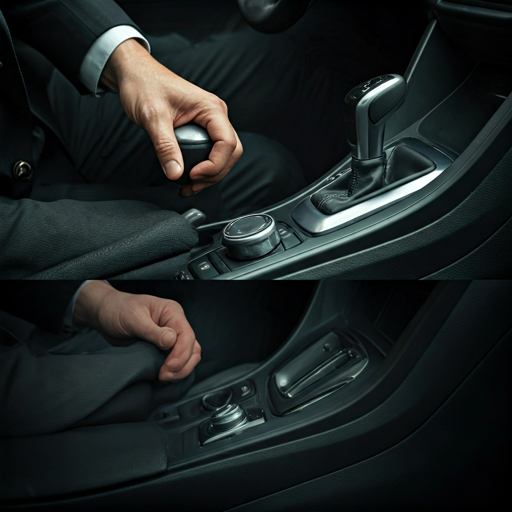 🔖 STEP 2: 전자식 파킹 브레이크(EPB)가 작동 중이라면, 브레이크를 밟은 채 EPB 스위치를 눌러 해제합니다.