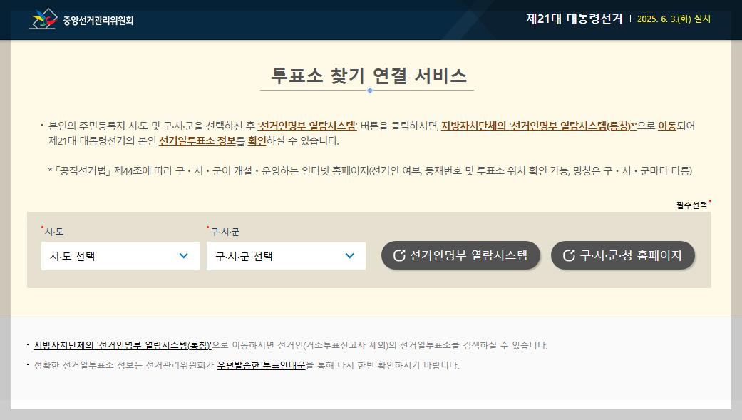 위 링크를 통해 현재 위치를 기준으로 가장 가까운 사전투표소를 손쉽게 찾을 수 있으니 미리 확인해두는 것이 좋아요.