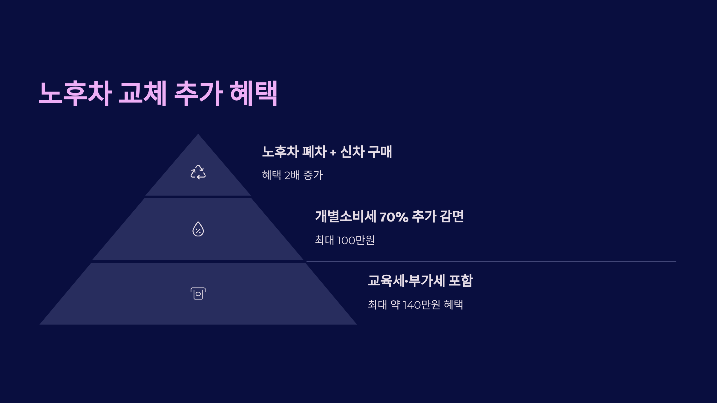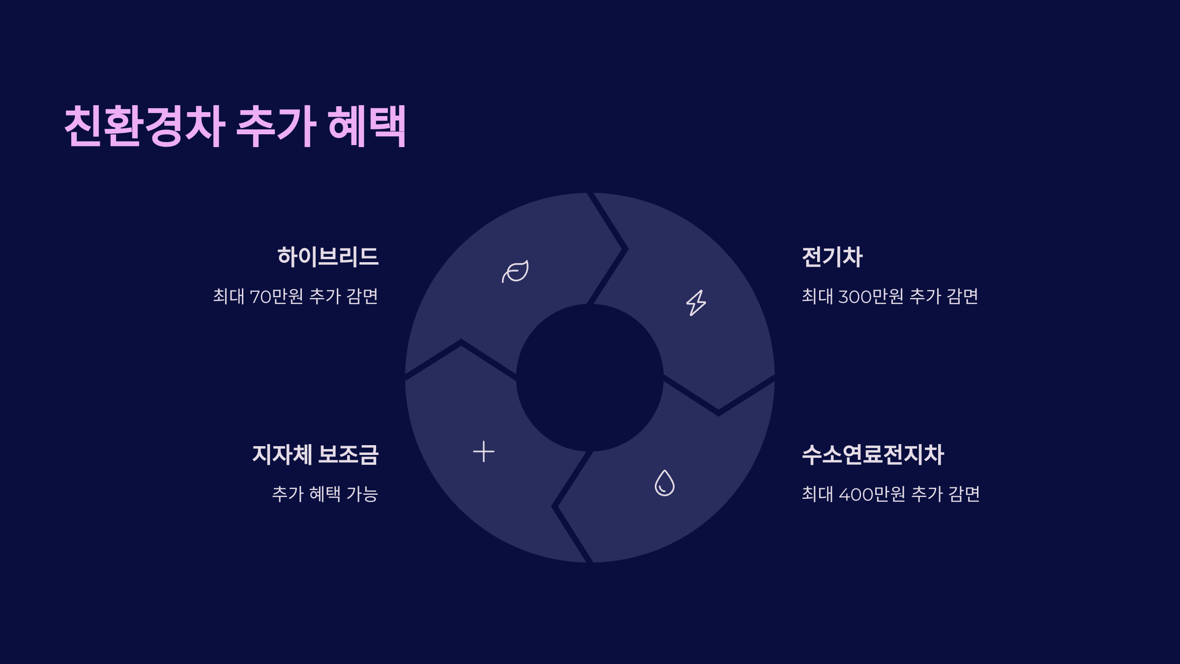 세금 감면 효과는 물론, 친환경차나 노후차 교체 시 추가 인센티브까지 받을 수 있으니 계획적으로 활용해 보세요!