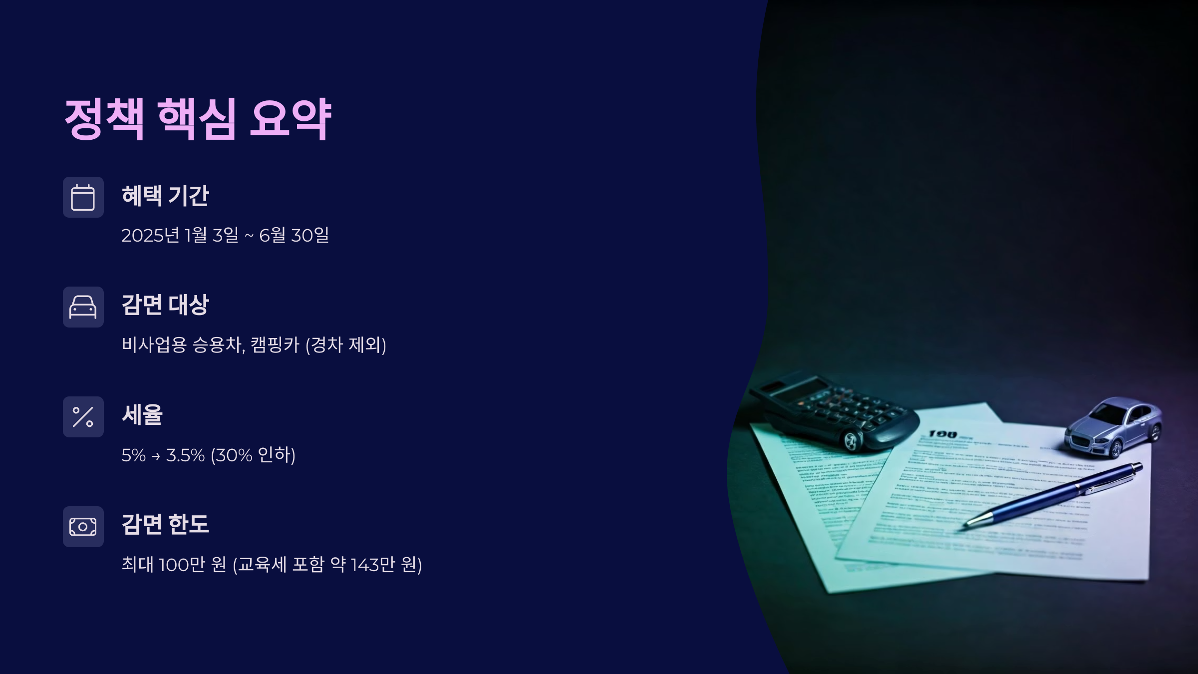 자동차 개별소비세 인하 정책은 2025년 상반기 차량 구매 예정자에게 큰 기회예요.