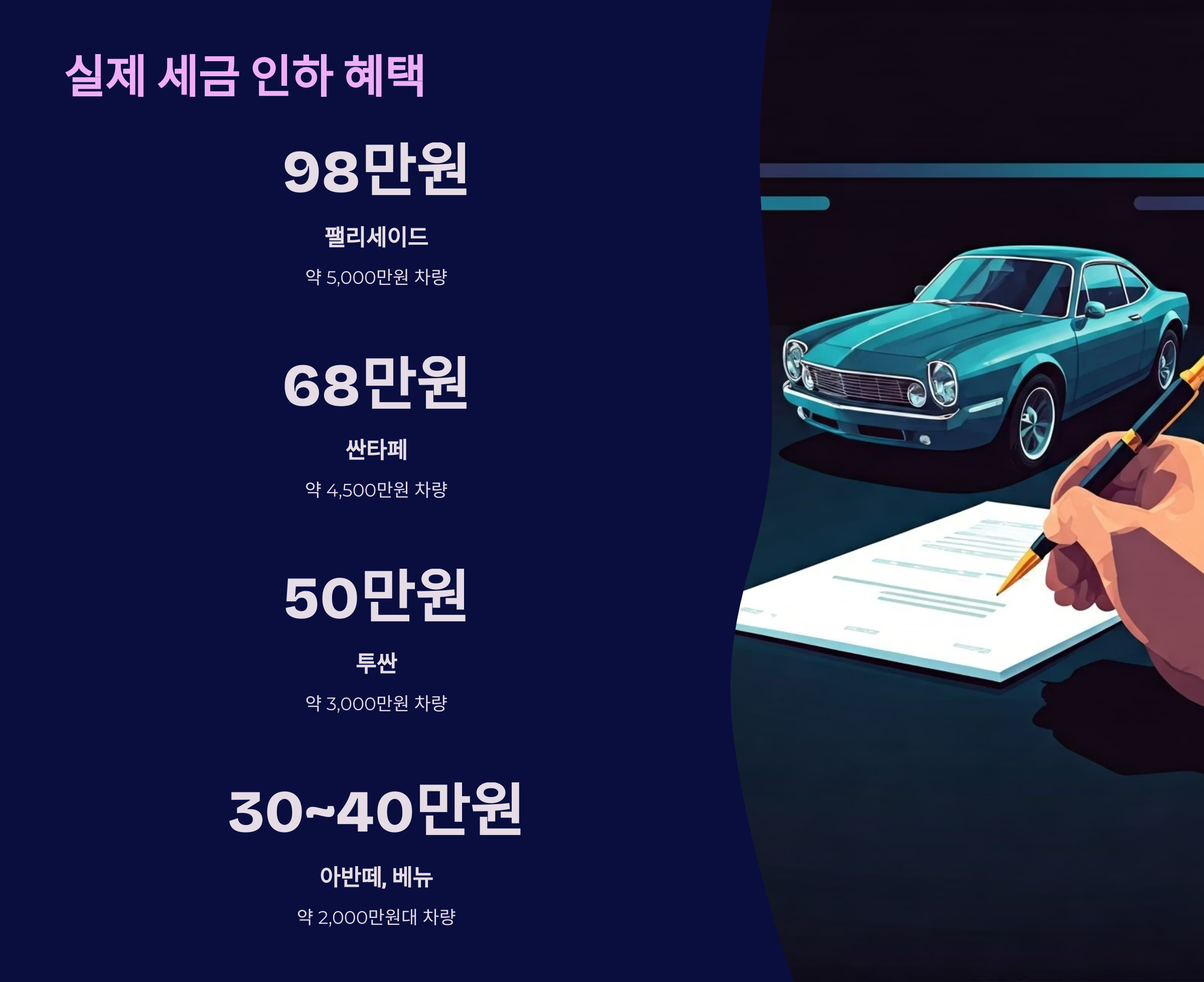 세금 인하 효과는 차량 가격에 따라 달라져요.