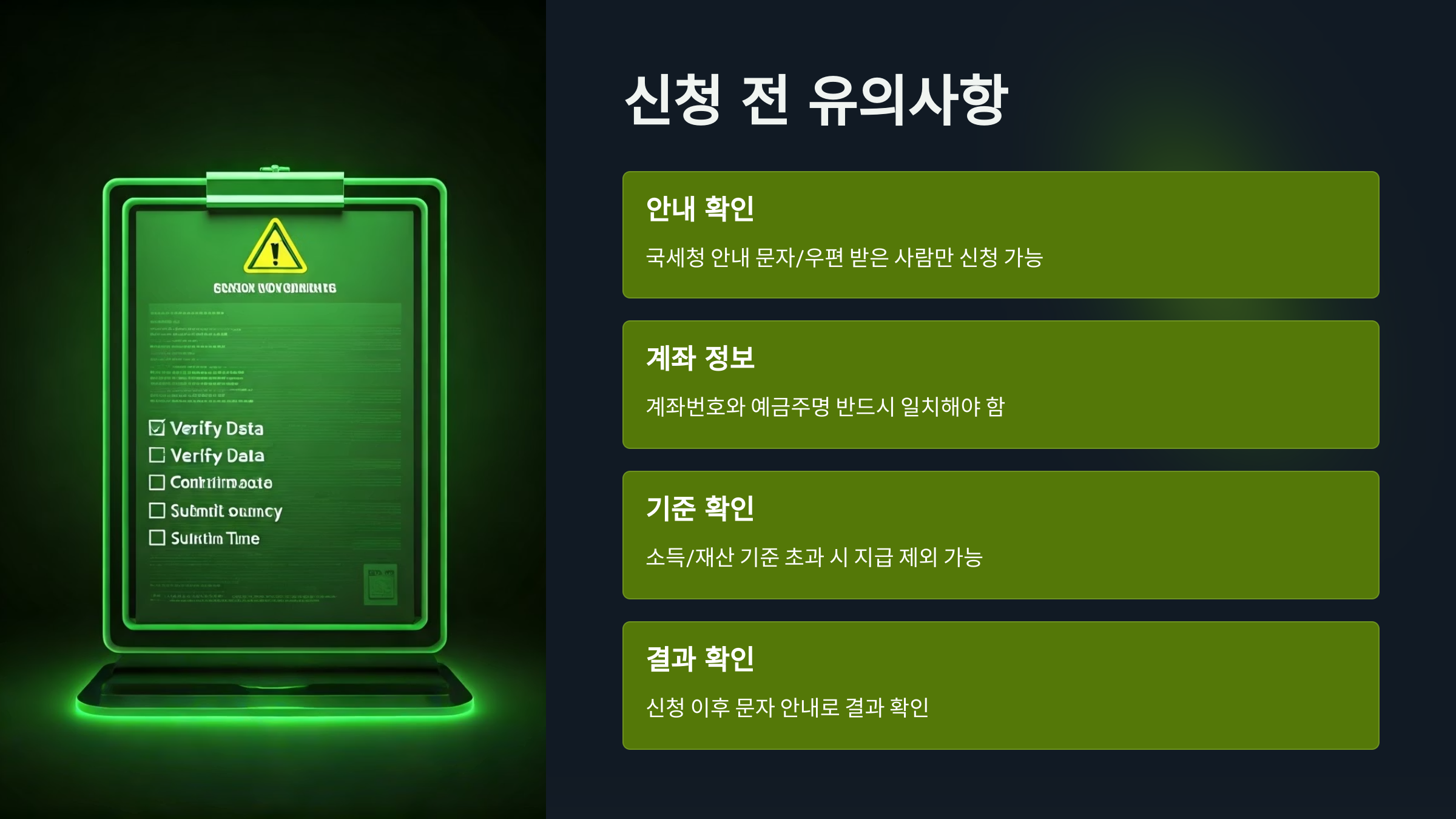 🔖 체크포인트 1: 반드시 국세청 안내 문자/우편을 받은 사람만 신청 가능