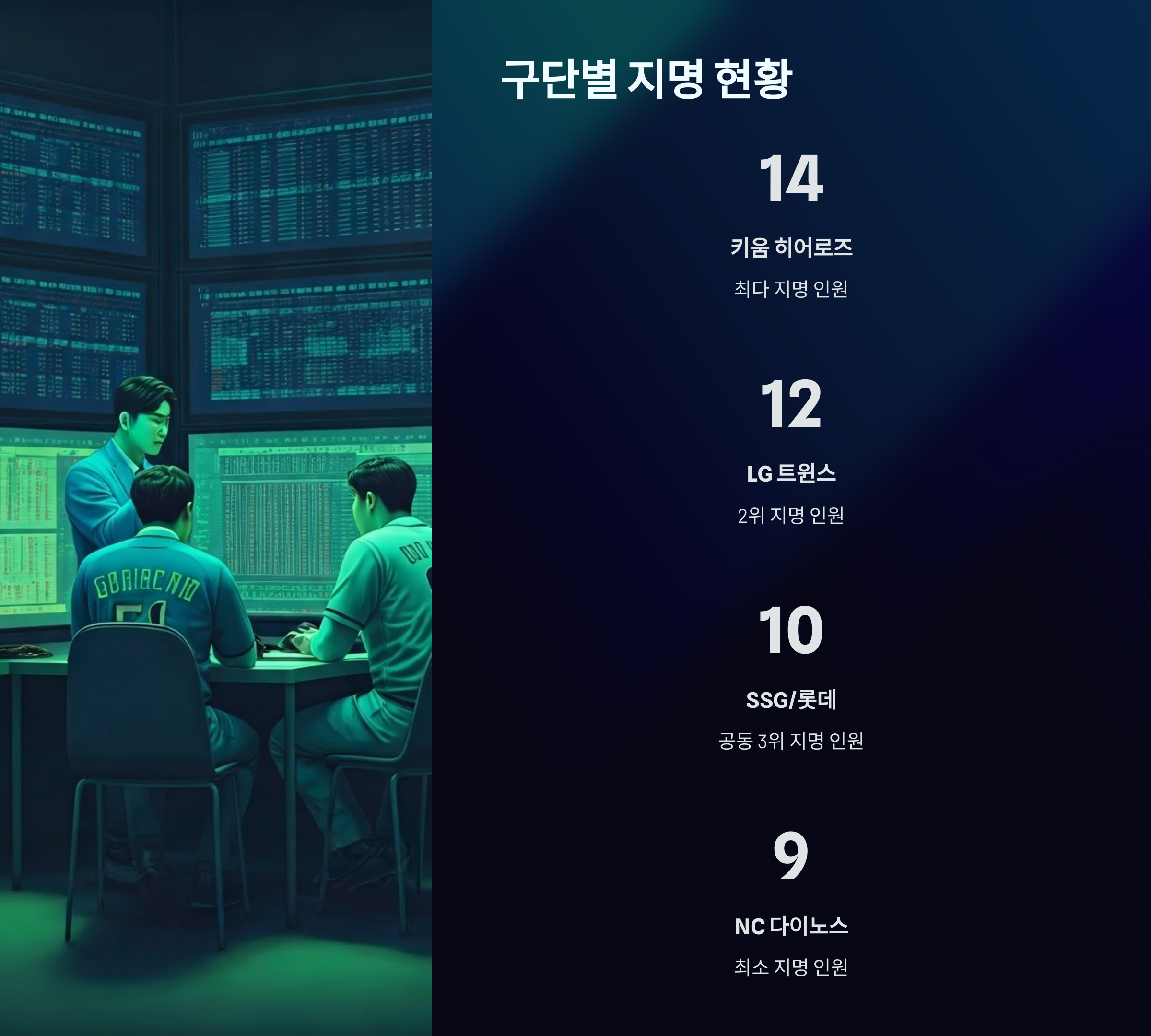 지명 인원 수는 단순한 숫자가 아닙니다. 그 해 구단의 육성 전략과 미래 방향성을 그대로 보여주죠!