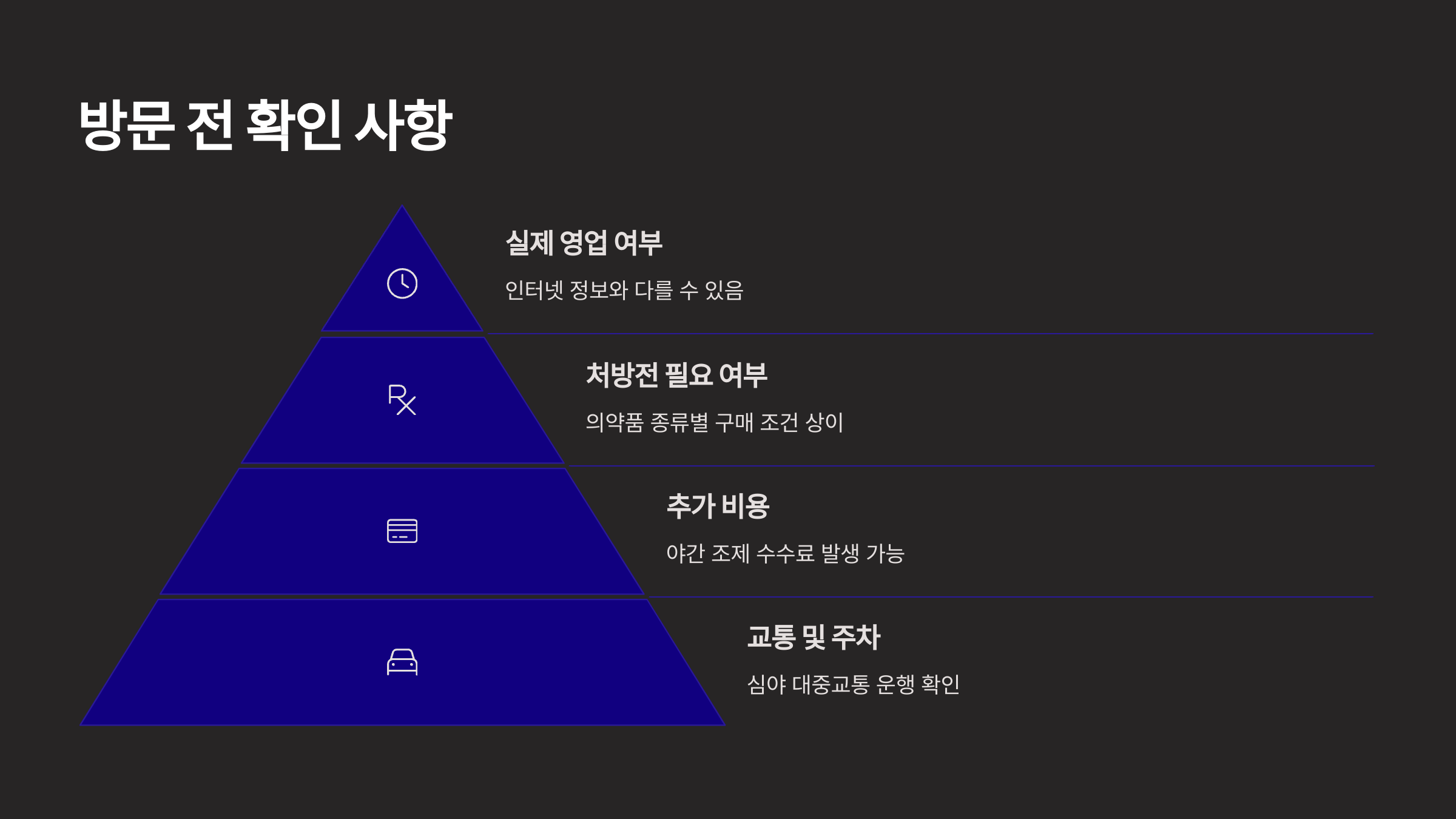 심야 시간, 최대한 빠르고 안전하게 약국을 이용하고 싶다면 아래 팁을 참고해주세요!