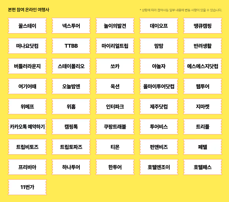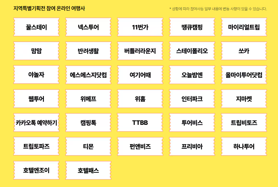 - 할인권 사용 가능 숙박상품 확대: 5만 원 초과 숙박상품에만 사용 가능했던 할인권을 확대하여 사용 가능 상품 확대\