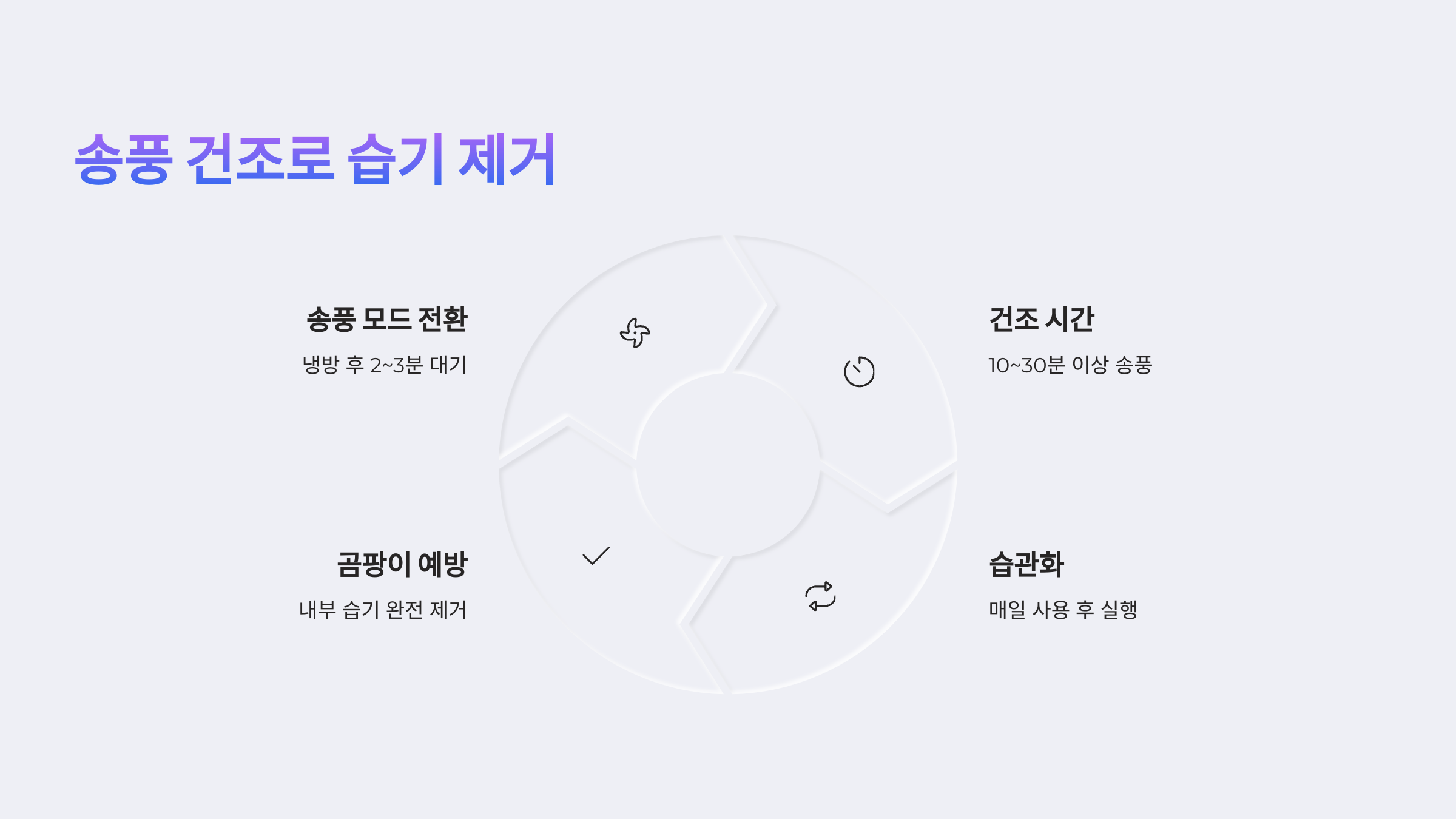 습기 제거가 곧 냄새 제거! 송풍 모드는 무조건 필수 코스입니다.