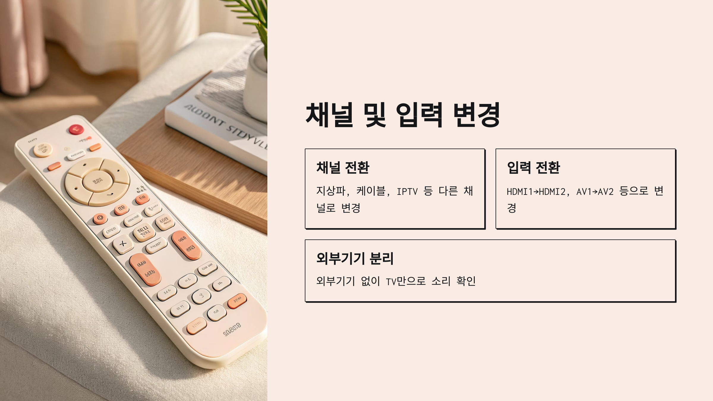 TV 소리가 안 날 때 특정 채널이나 입력만 문제가 되는 경우도 있어요.